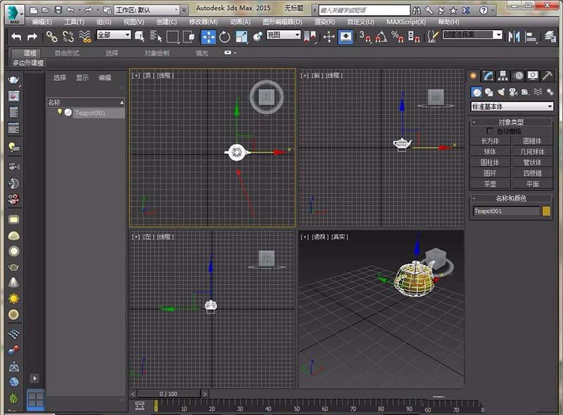 1、首先打開3dmax進入工作區域,然后隨便創建一個對象,這里創建一個茶壺。如圖所示
