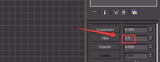 4、選擇這個(gè)矩形,按下鍵盤上的數(shù)字1鍵,進(jìn)入點(diǎn)子層級,在modify里修改fillet的值為0.5,如圖所示:
