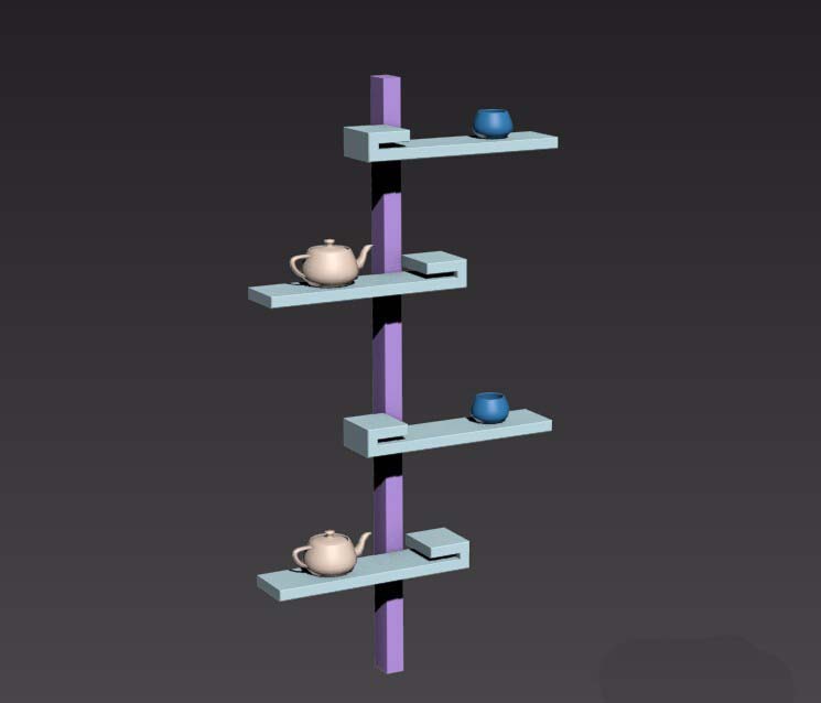 3ds max是一款三維圖形制作軟件,其功能非常強(qiáng)大,利用3ds max可以創(chuàng)建出三維模型,在進(jìn)行三維模型創(chuàng)建時(shí),方法靈活多樣,下面我們就使用3ds max來制作一個(gè)裝飾物架,裝飾物架模型如圖所示: