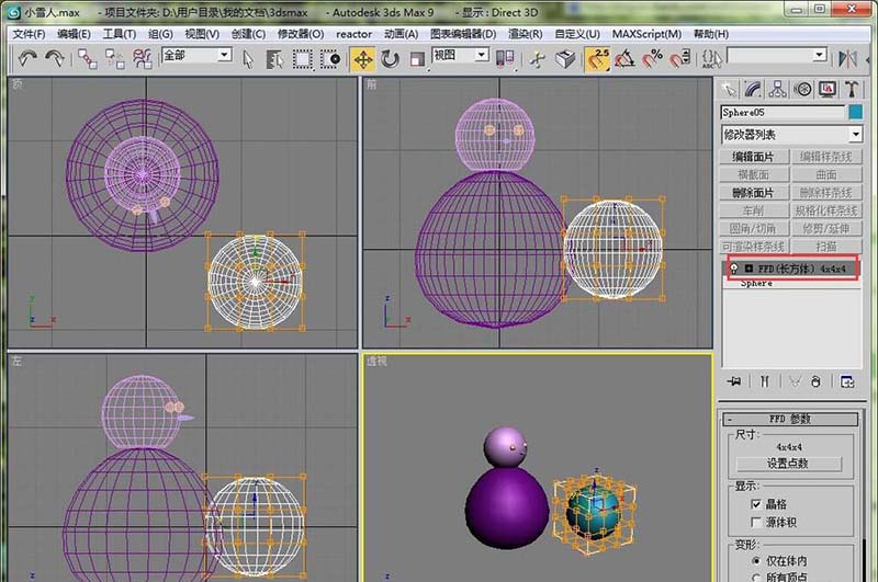 10、接下來做一對翅膀。也是畫一個球體。然后給球體加載一個FFD長方體的命令。