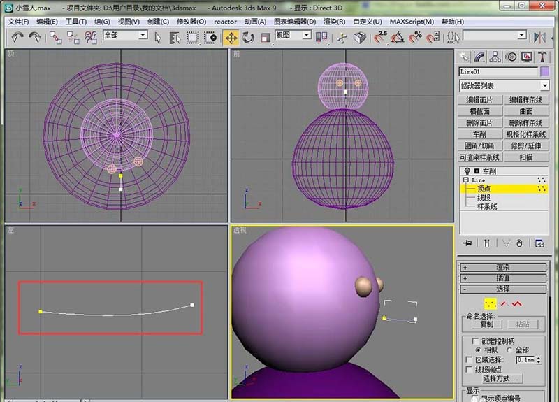9、加載車削修改器,方向設置為X軸。然后就可以形成一個抽象的鼻子了。再將這個鼻子移到相應的位置上。