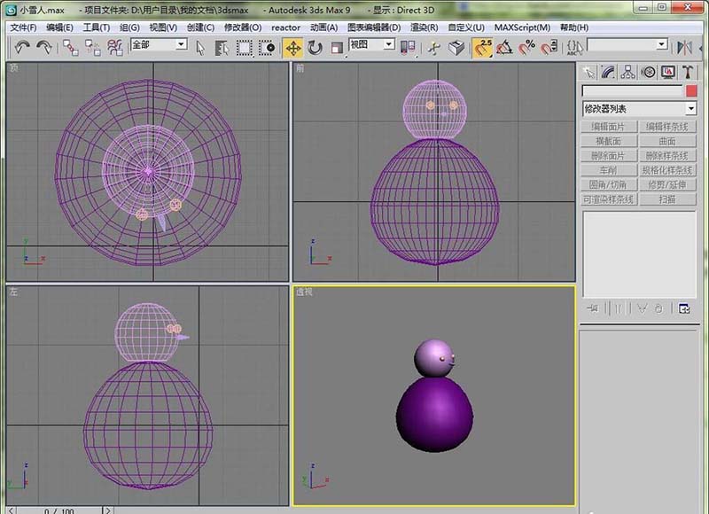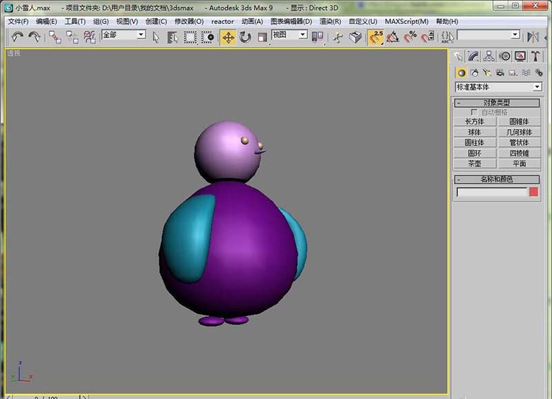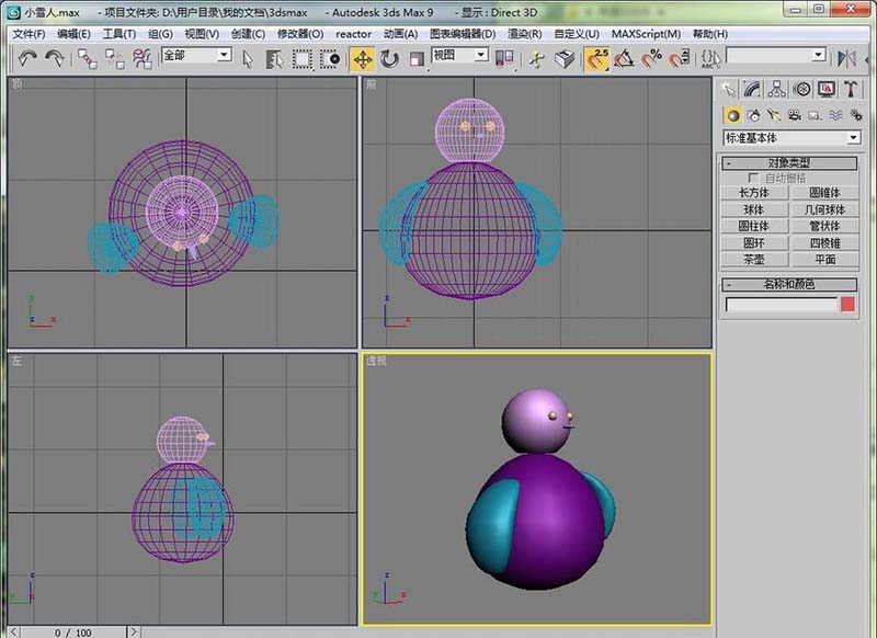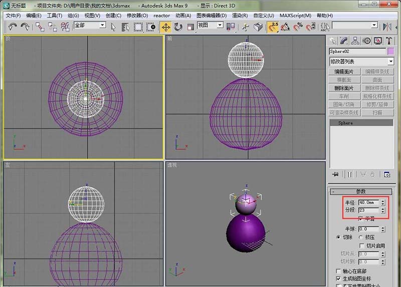 5、然后在做一個球體,這個部分當做玩具的頭部。大小可以自己設置。大或者小看自己喜好了。主要是要將這個球體放在剛剛身體上面,開捕捉,結合幾個視圖移動。