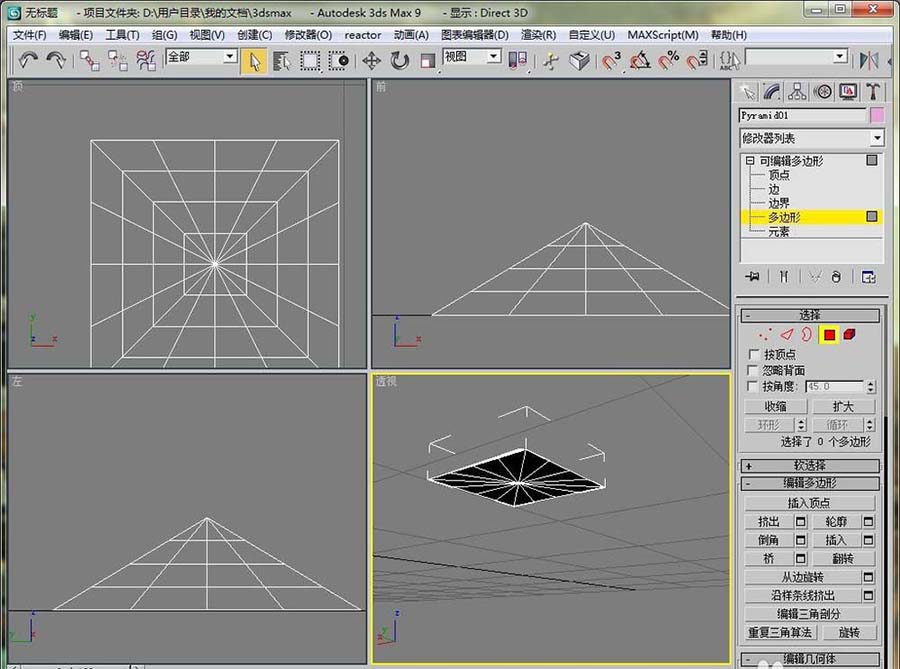 3、把四棱錐轉(zhuǎn)換成可編輯多邊形