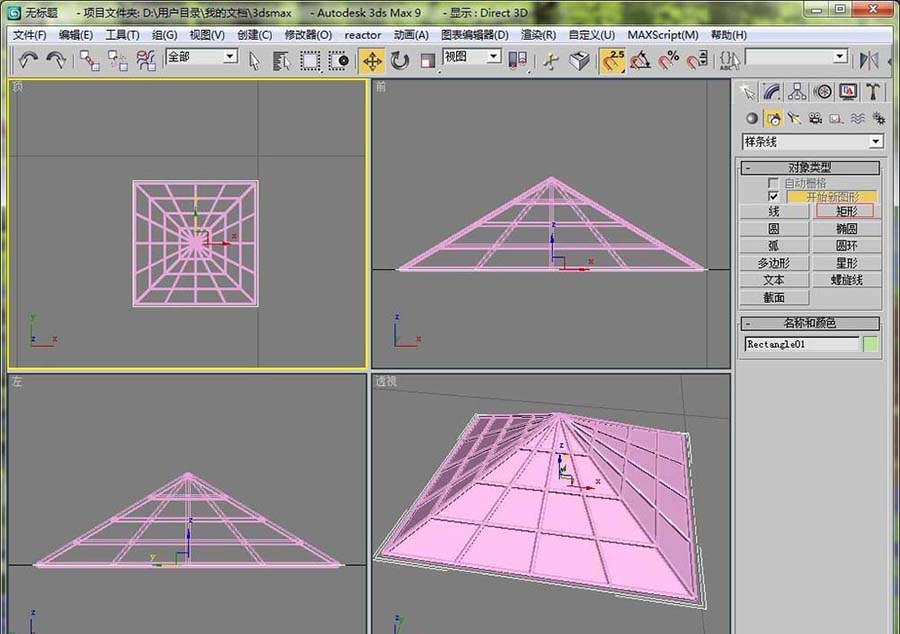 7、在頂視圖里畫一個矩形,做頂部的邊緣