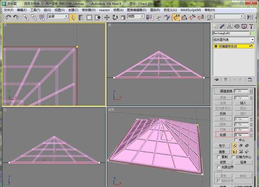 8、把矩形轉(zhuǎn)換成可編輯樣條線。對它進行輪廓