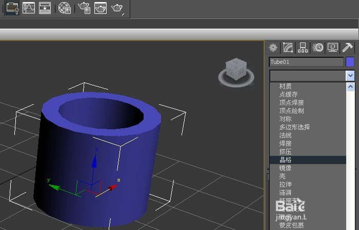 2、鼠標左鍵單擊【修改】面板,可直接修改管狀體,長、寬、高的參數值,修改后,在透視圖上的管狀體就發生改變,如下圖所示。