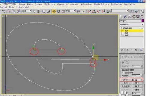 5、打開修改面板,進(jìn)入頂點(diǎn)修改中,然后配合Ctrl鍵把沒有閉合的點(diǎn)焊接好。(觀察是否焊接好的方法,移動"田"字型的頂點(diǎn),如果斷開就證明沒有焊接好。)