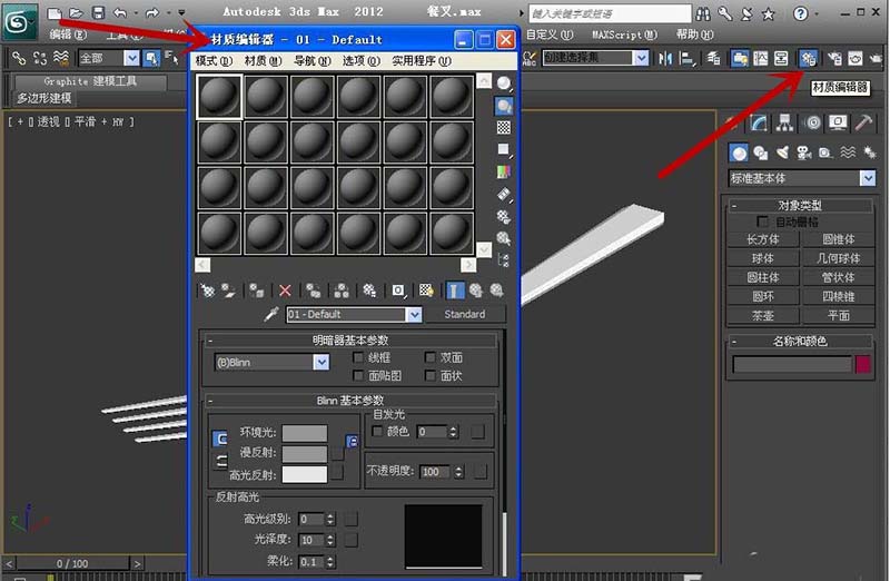 2、點(diǎn)擊材質(zhì)編輯器按鈕,打開材質(zhì)編輯器面板。