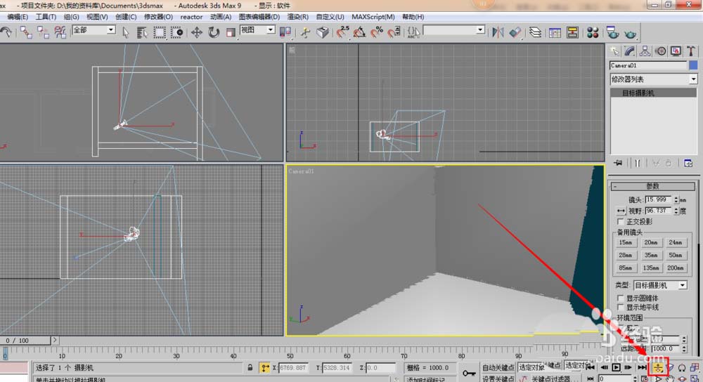 1、如下圖所顯示,這里打著攝像機,在如下圖可以看到透視圖。