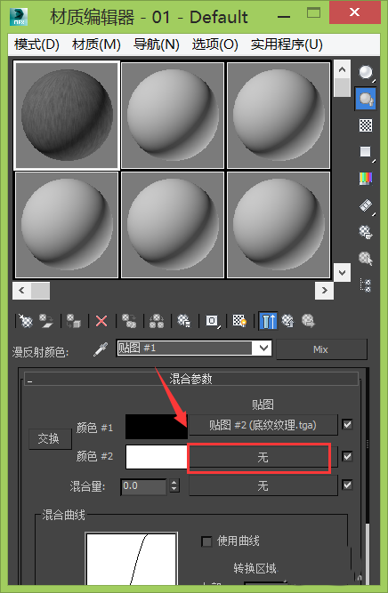 7、點擊混合選項,返回到上一層級,再找到顏色#1選項后的貼圖選擇框,如圖所示: