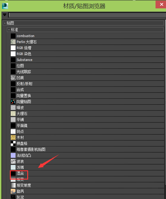 6、點擊選擇框在彈出的對話框內(nèi)找到混合選項,如圖所示: