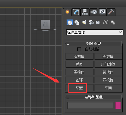 3、選擇茶壺選項,在透視圖里創(chuàng)建一個茶壺模型,如圖所示: