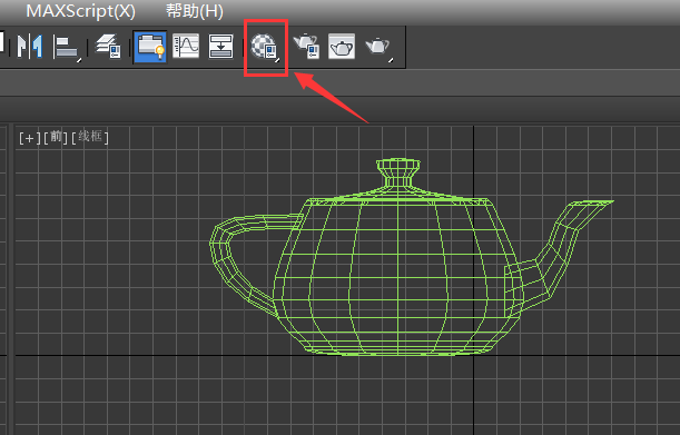 4、選擇茶壺模型,在上面找到材質(zhì)編輯器選項,如圖所示: