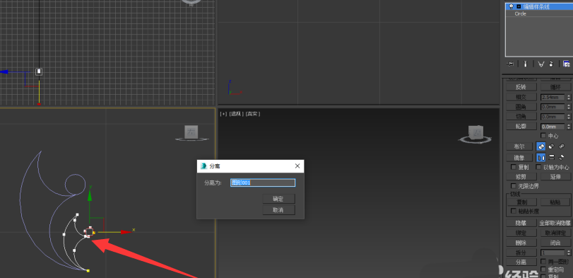 7、進入編輯樣條線修改器,使用“分離”工具將圓與其他線型分離(目的是便于后期材質制作使用);