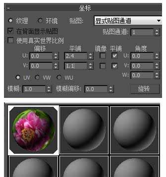 11、單擊ID2右側的按鈕,指定給“漫反射(Diffuse)”右側按鈕“hua.jpg”貼圖,調節貼圖參數如圖所示: