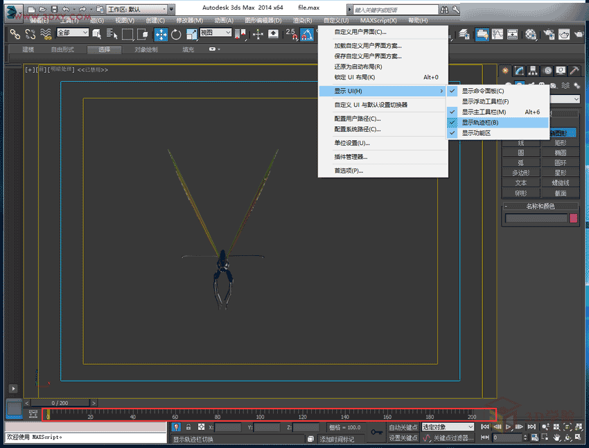 7、選擇菜單欄自定義-顯示UI-顯示軌跡欄,將時(shí)間軸下方的刻度條顯示出來(lái)(方便觀察設(shè)置時(shí)間的關(guān)鍵點(diǎn))。
