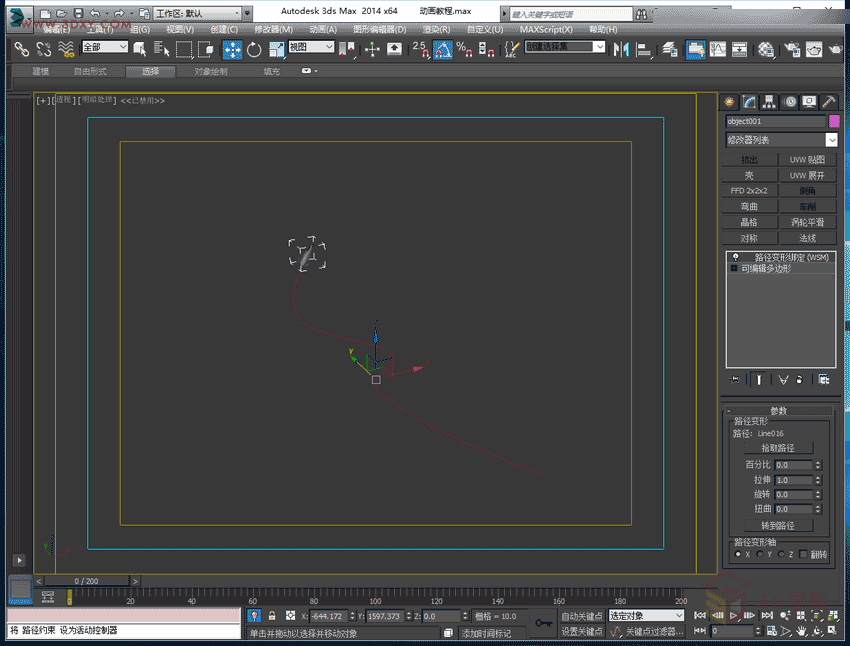 12、選擇菜單欄的動(dòng)畫-約束-路徑約束,選擇蝴蝶運(yùn)動(dòng)的路徑,調(diào)整方向。