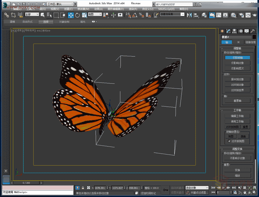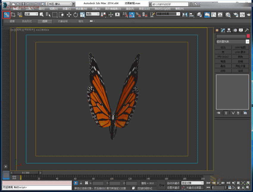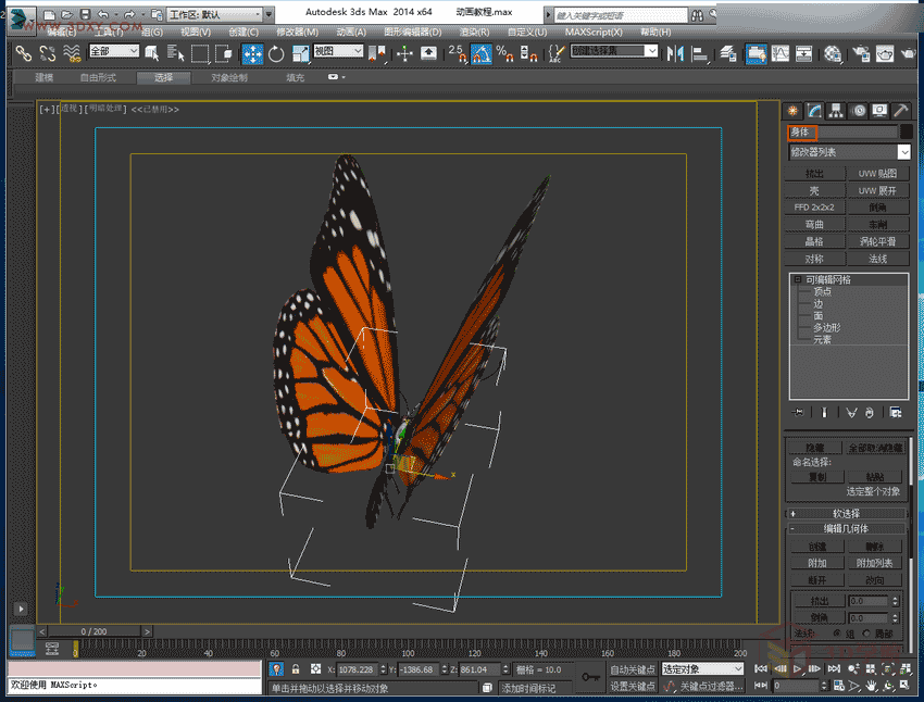 4、將蝴蝶模型孤立起來(lái),并塌陷為3部分,兩個(gè)翅膀和身體。
