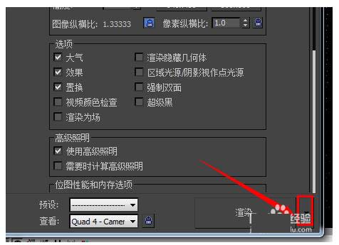 2、取消方法,點擊渲染設置面板右下角渲染旁邊的小三角。