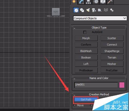 5、在create里選擇compound objects選項,在compound objects里找到loft命令,點擊loft命令,在其選擇區域里找到get paths選項,如圖所示: