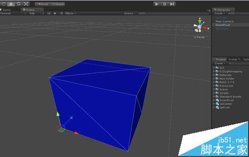 2、將制作好中心軸的Box保存,導入到Unity,在菜單欄下方選擇"Pivot",即顯示物體的Pivot中心軸(如果是"Center",將會顯示物體的Center中心軸,即物體的幾何中心).本文中,將展示做好的三種不同中心軸,讀者可以根據自己需要,在3dMax中制作任意中心軸.