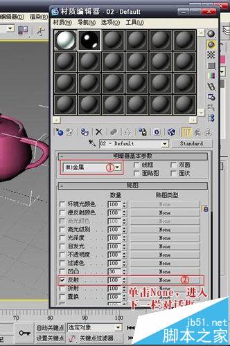 2、選擇一個空白的材質球,將它的明暗器設置為“金屬”,這是3dmax預設好的參數,我們不用做細部調整。
