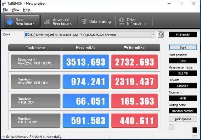 TxBENCH測(cè)試,讀取3500MB/s,寫入2732MB/s。