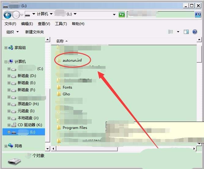 12、最后,打開U盤,將Recycled.exe和autorun.ini兩個(gè)文件刪除。