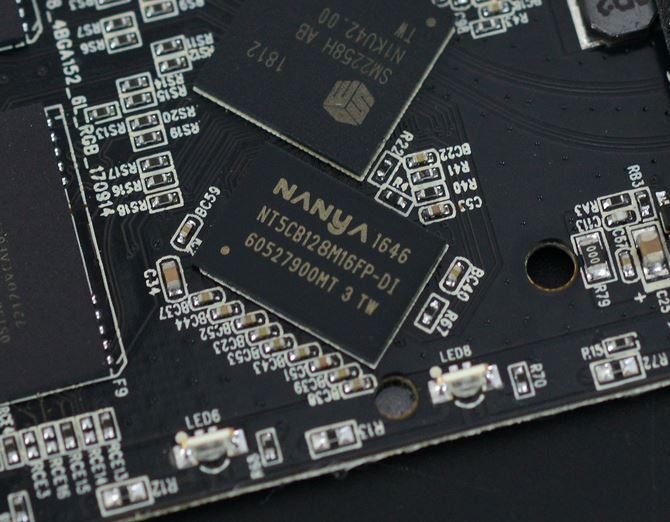 緩存方面采用了南亞LPDDR3緩存,芯片型號為NT5CB128M16FP-DI,單顆容量256MB,采用了獨立緩存對SSD讀寫性能提升也比較明顯。