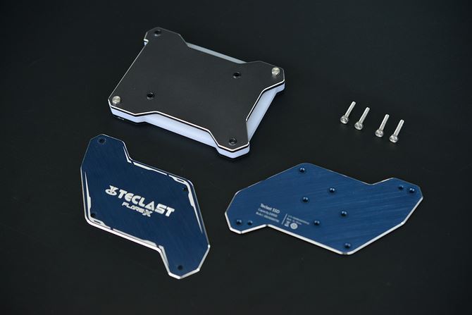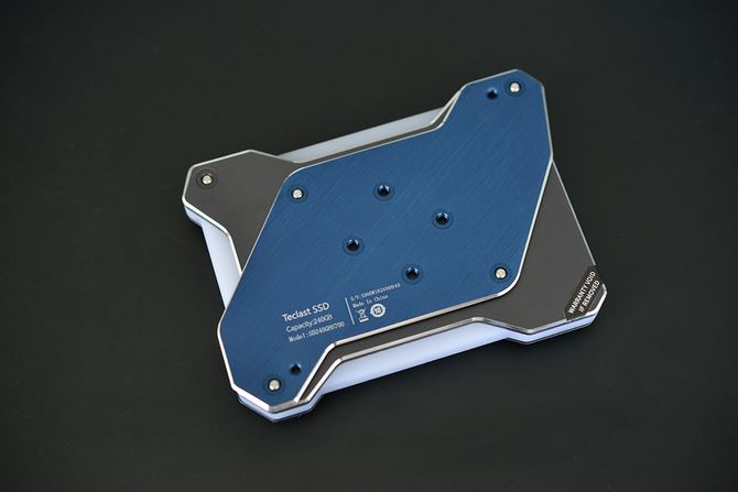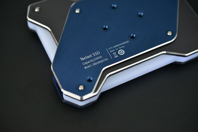 臺電鋒芒S700的背面預留了多個螺絲孔位,方便不同類型機箱的固定安裝,底部的銘牌信息標明了SSD容量以及序列號。