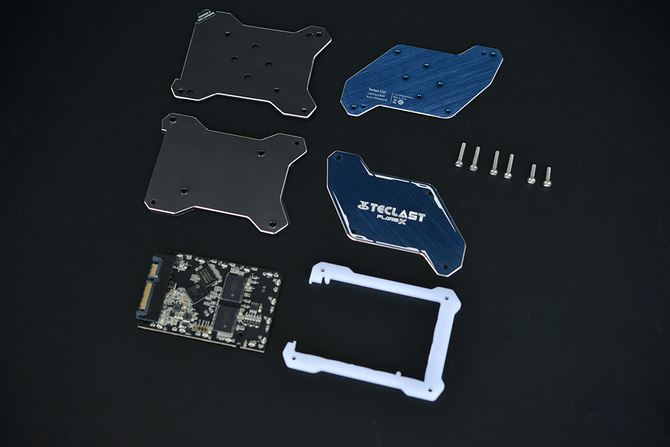 拆掉表面藍色鰭片后,上下還各有兩層鰭片,拆下即可看到SSD的PCB板了,這次PCB板還由聚碳酸酯均光條固定,起到了作為中框的保護及固定作用。