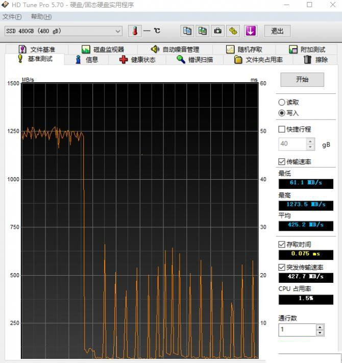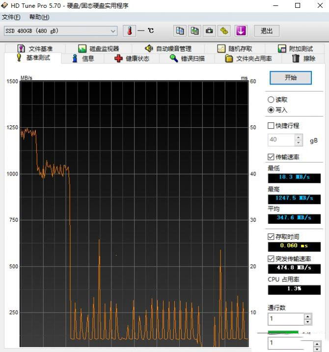 HD TUNE PRO寫測試(480G)