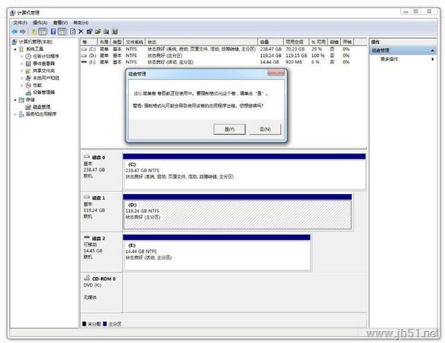 打開操作系統自帶的磁盤管理,沒有發現什么問題,就試著重新格式化了一下,格式化過程一切順利,不像在DiskGenius軟件中,提示無法格式化。