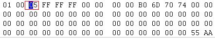 8號盤查詢結果如圖4所示。其0x01C6處數值代表指向下一個扇區。但是下一個扇區很明顯不是GPT的頭部。