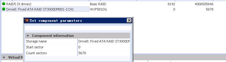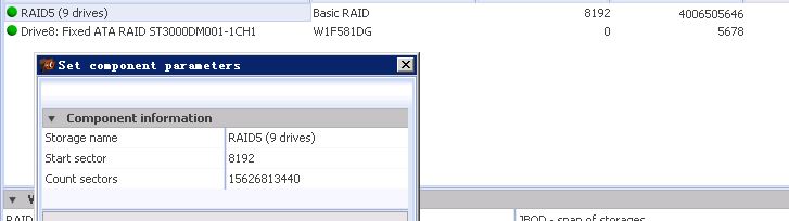 點擊Build進行重組。組好后,由于數據從1024*8=8192個扇區開始,若專業恢復工具沒有跳轉到此扇區的功能,那么剛組好的RAID必須和一個文件再進行一次Build重組操作。RAID的起始扇區(Start sectors)選擇8192,這個文件可以任意選擇起始扇區和大小大小(Count sectors),如圖8和圖9所示,圖10是組好的RAID-5。