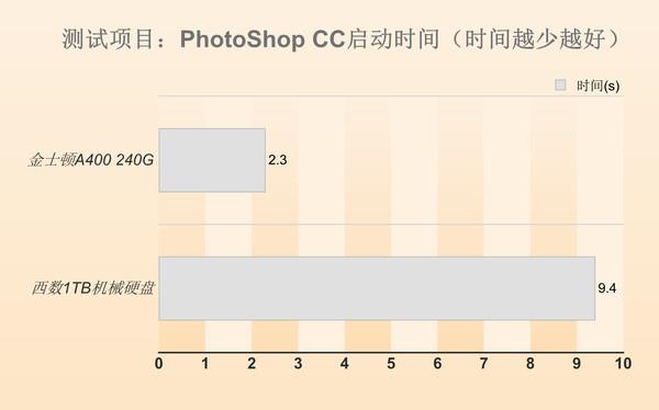 性能的差距可以明顯反應在日常各種運用中,比如你開關機速度、、Photoshop軟件開啟,加載圖片速度,金士頓A400 240G SSD都領先機械硬盤一大截。