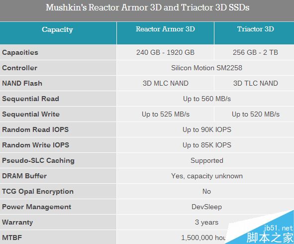CES 2017上進行過一番展示后,Mushkin今天正式發布了兩款新的固態硬盤“Reactor Armor 3D”、“Triactor 3D”,都是面向主流用戶的2.5寸SATA型(7毫米)。