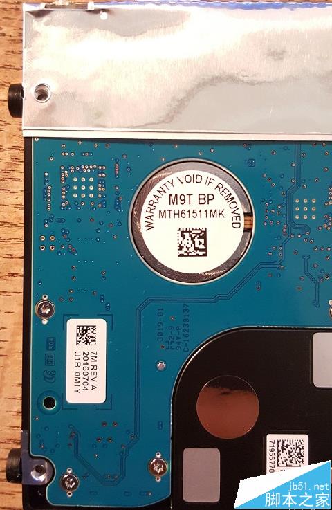 7、包裹轉(zhuǎn)換板的金屬膜,Backup Plus系列的是全部包住硬盤PCB,這個只能包很小一段,果然Expansion產(chǎn)品低一級。