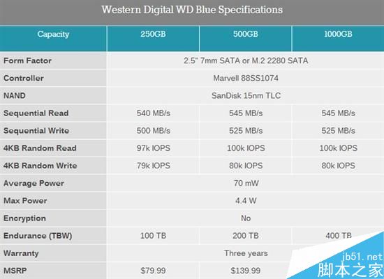 從一名普通消費者的角度出發,以售價1000元人民幣左右的1TB容量WD Blue為例,Sandisk 15 nm TLC閃存類型,讀寫方面都在500MB/S的能力,作為電腦的主力硬盤確實優秀,固態硬盤先天優勢的4K隨機讀寫能力更不在話下。