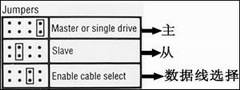 通過CMOS的設置Master可以正確引導我們的系統,如果你沒有設置好我們的硬盤Master和Slave,電腦無法認出那個是你要做為系統的硬盤,當然如果你電腦中只有一個硬盤,那么就無所謂了,如果是二個硬盤就必須設置一個為Master,一個為Slave,否則可能在CMOS中會認不到其中的一個或全部認不到,這就我們要求通過設置Master和Slave的跳線來設置,具體的設置方法可以看看硬盤上的說明標志,如果要設置為Master就把跳線按圖設置到Master位置上,如圖所示: