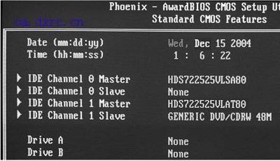 在電腦中我們通常會碰到安裝多個硬盤的情況,可能還得安裝光驅什么的,這樣就必須分出主從關系,這樣就有了硬盤中的Master和Slave,Master就是主盤的意思,Slave就是從盤的意思,那么要這個主盤從盤干什么呢,這里就得涉及到一個系統啟動的問題,因為我們大多數啟動會設置為主盤來啟動,相對應的在CMOS BIOS中會有一個設置,也就是第一啟動硬盤,如圖所示: