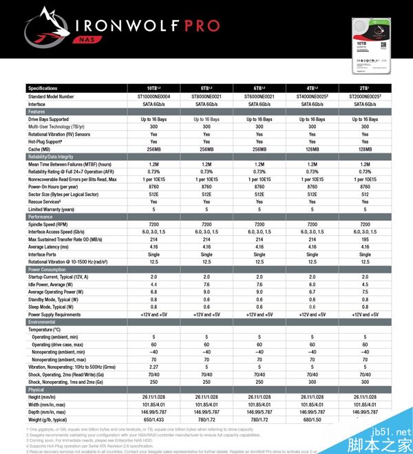 這些硬盤都是傳統的3.5寸SATA 6Gbps硬盤,7200RPM轉速,128MB(2/4TB)或256MB(6/8/10TB存,支持最多16盤位并聯,可以熱插拔,內部最大數據率214MB/s(2TB 195MB/s),平均延遲4.16毫秒。