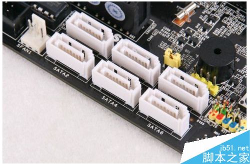3、大家的主板可能會不一樣,接口的位置也會不一樣。但是,SATA接口和PCI接口的樣子是一樣的。如果找不到可以根據下面的圖找到。這是SATA接口,或者在硬盤上找到接口比較小的那條線就是數據線,然后順著數據線找到SATA接口。SATA接口一般有2個到6個不等。