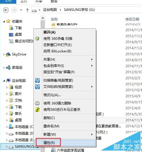 1、首先,右擊這個移動硬盤的盤符,這里是F,這時會彈出一個窗口,在這個窗口中,選擇“屬性”