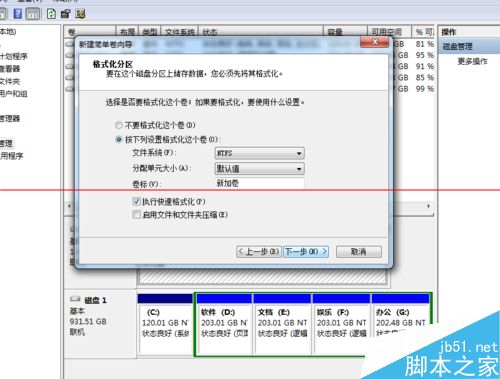 7、格式化分區時,請按下圖的參數進行設置;(系統默認進行的)