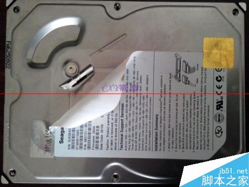 2、將正面四周的螺絲擰下來,發(fā)現(xiàn)還是打不開。撬也打不開,最后發(fā)現(xiàn)還有固定螺絲。摸到了說明貼紙下面有凹處,揭開發(fā)現(xiàn)這里還有一個螺絲。沒經(jīng)驗,不知道有一個固定磁頭的螺絲。將它擰下來,正面一共七個螺絲全部擰下來了,上蓋輕松打開。
