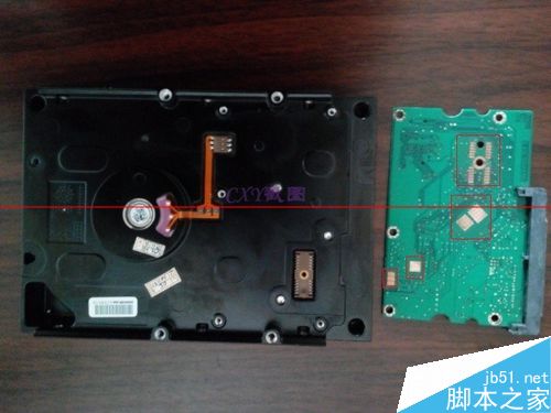 首先拆卸的是背面的電路板,擰下六個螺絲,將電路板與硬盤分離。卸下后,發(fā)現(xiàn)電路板是一個整體,只用八個點與內(nèi)部相連。如果有多個損壞的硬盤,就可以用替換法修理硬盤。看到這八個接觸點,知道了電路板出現(xiàn)問題的機率大一些,主要是氧化問題。