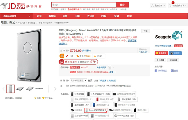 還記得希捷在CES 2015大展上發(fā)布的全球最薄移動(dòng)硬盤“Seven”嗎?現(xiàn)在它正式開賣了一般來說,2.5寸筆記本硬盤的標(biāo)準(zhǔn)厚度是9.5毫米,超薄型做到了7毫米,而希捷這款移動(dòng)硬盤連盤體加外殼總共才7毫米,秘密就在于內(nèi)部硬盤只有5毫米厚,以往只在二合一設(shè)備、平板機(jī)里才能偶爾看到。規(guī)格方面,該硬盤編號(hào)“STDZ500400”,容量500GB,接口USB 3.0,附送的46厘米長(zhǎng)數(shù)據(jù)線也采用編織設(shè)計(jì),而且無需輔助供電。