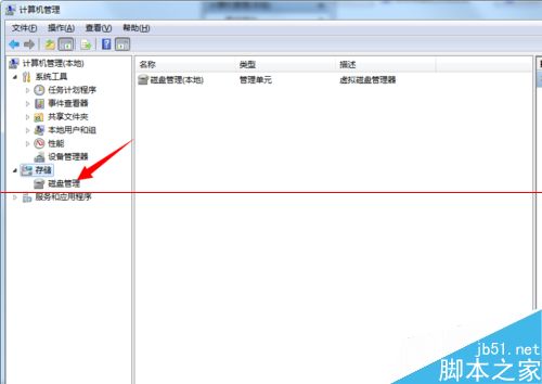 4、進(jìn)入“計(jì)算機(jī)管理”,點(diǎn)擊下方的【存儲(chǔ)】,找到【磁盤管理】點(diǎn)擊打開