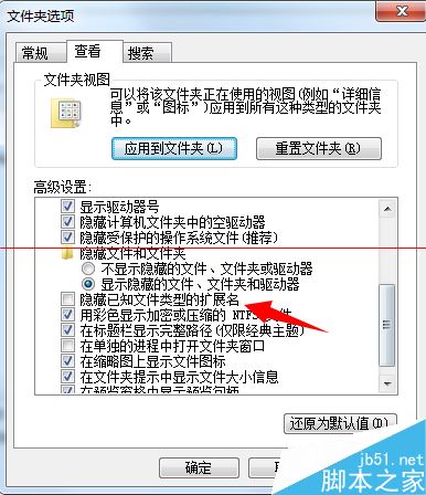 4、如果不顯示文件后綴名,可以打開文件夾選項,將【隱藏已知文件類型擴展名】勾去掉